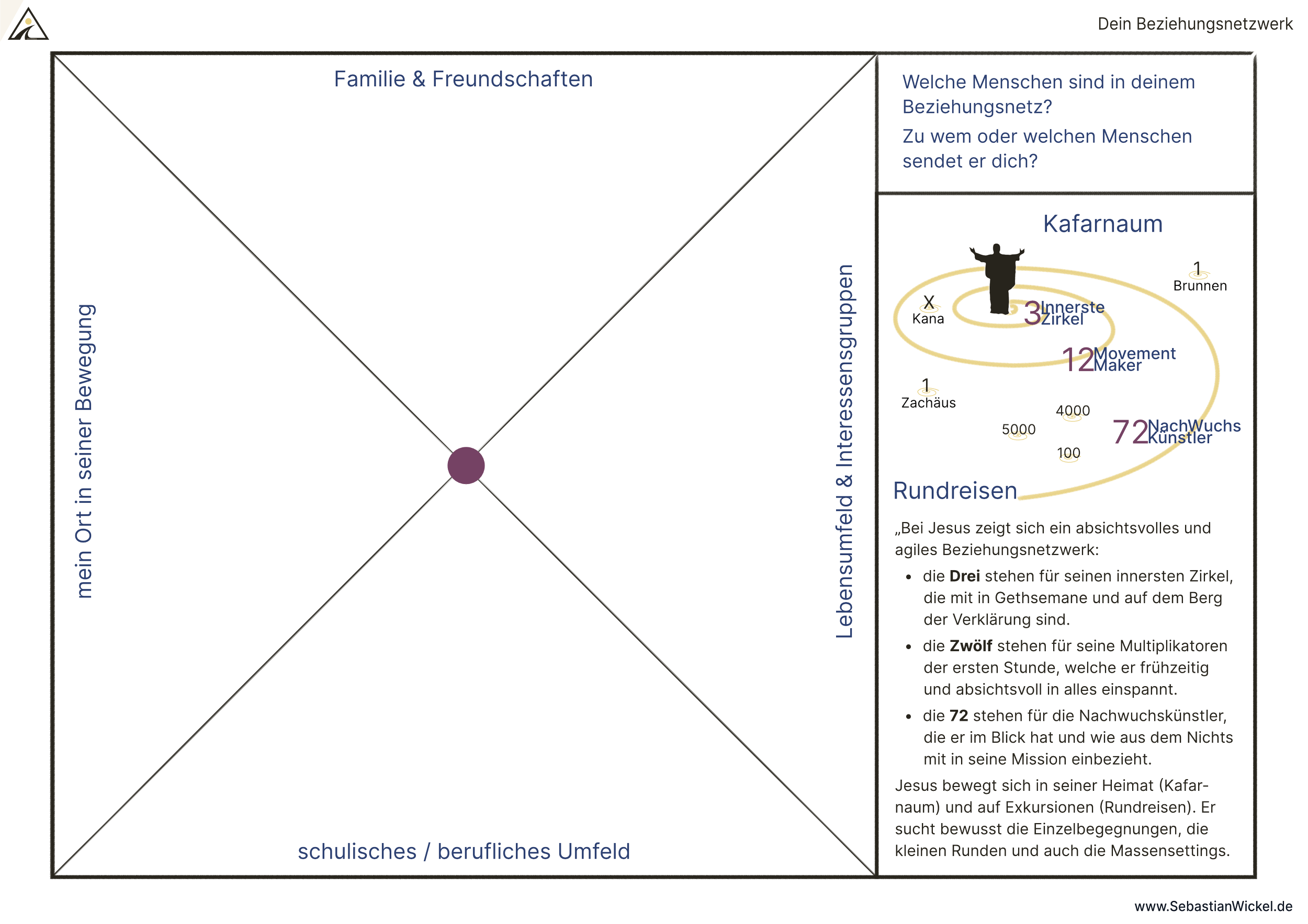 Ein Schaubild, um dir dein Beziehungsnetzwerk bewusster zu machen und zu entdecken mit wem und zu wem Jesus dich im Leben stellt.